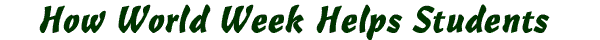 How do you interest young people, who are inundated with hyper-materialistic messages, in issues that affect millions of children, such as hunger, disease, poverty, human rights, and environmental devastation? Many young people don't have firsthand experience with these problems, which seem to occur so far away. Their only exposure might be images on the TV news that cause them grab for the remote and change channels. Unless they see how they can impact our world for the better, they are great risk of becoming apathetic, cynical and self-centered.Yet young people are exactly the people to engage in global problems. They have natural compassion. They have the desire to act, if they know ways that they can help. And they have the ability to inspire adults when they do. World Week encourages understanding and raises awareness of important global issues. It helps students grasp problems affecting the poor and gives them ways to respond. World Week engenders a global perspective while counteracting the very normal feelings of discouragement and helplessness, that come from hearing alarming statistics such as those associated with child deaths, HIV/AIDS prevalence, or environmental degradation. Impact of World Week on StudentsThe following reactions to World Week activities are typical. "When we were walking, a lady asked us what we were doing. I told her that we were doing a Water Walk for children in developing countries." "I know realize how lucky I really am." |